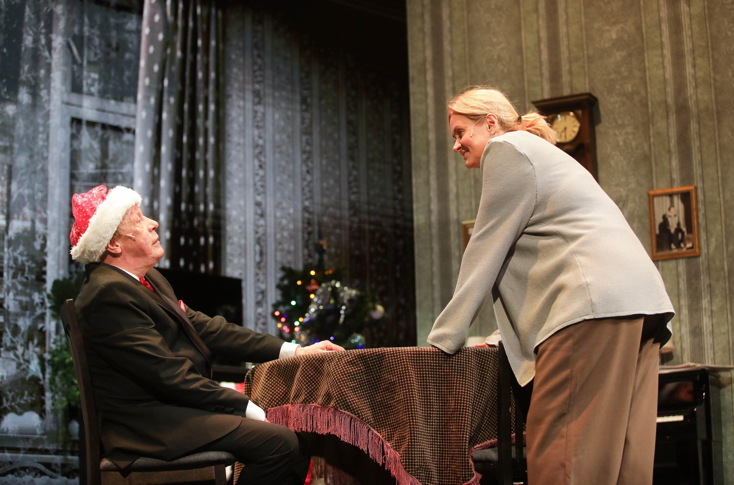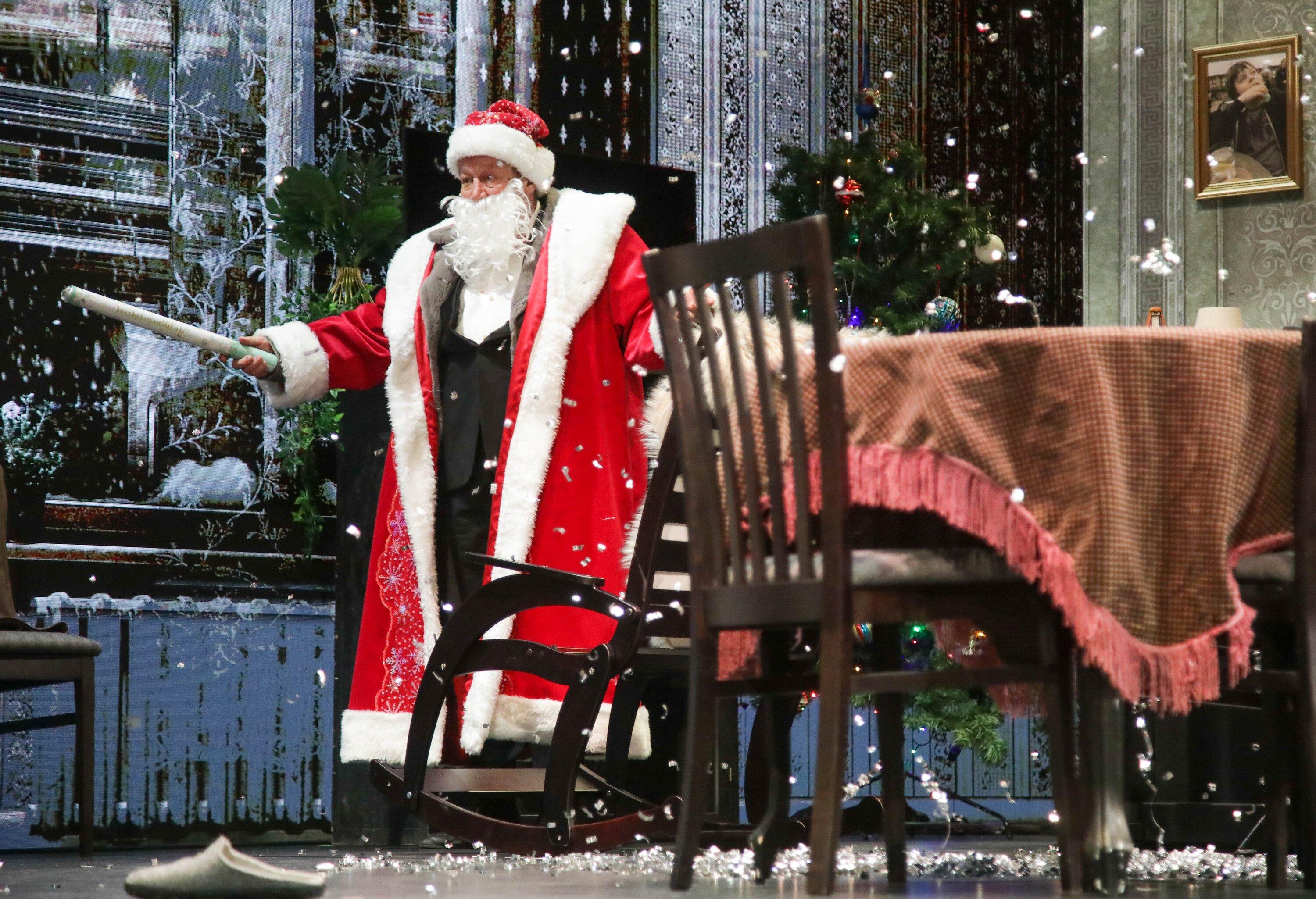 Действие разворачивается в небольшой квартирке в доме у железной дороги. Судя по обстановке, это начало 00-х. Но режиссер не смог отказать себе в удовольствии начать спектакль с кружочка в Телеграме (который еще отправляется без танцев с бубном) и актуальной шуточки про «заглушенную связь у ЦУМа».