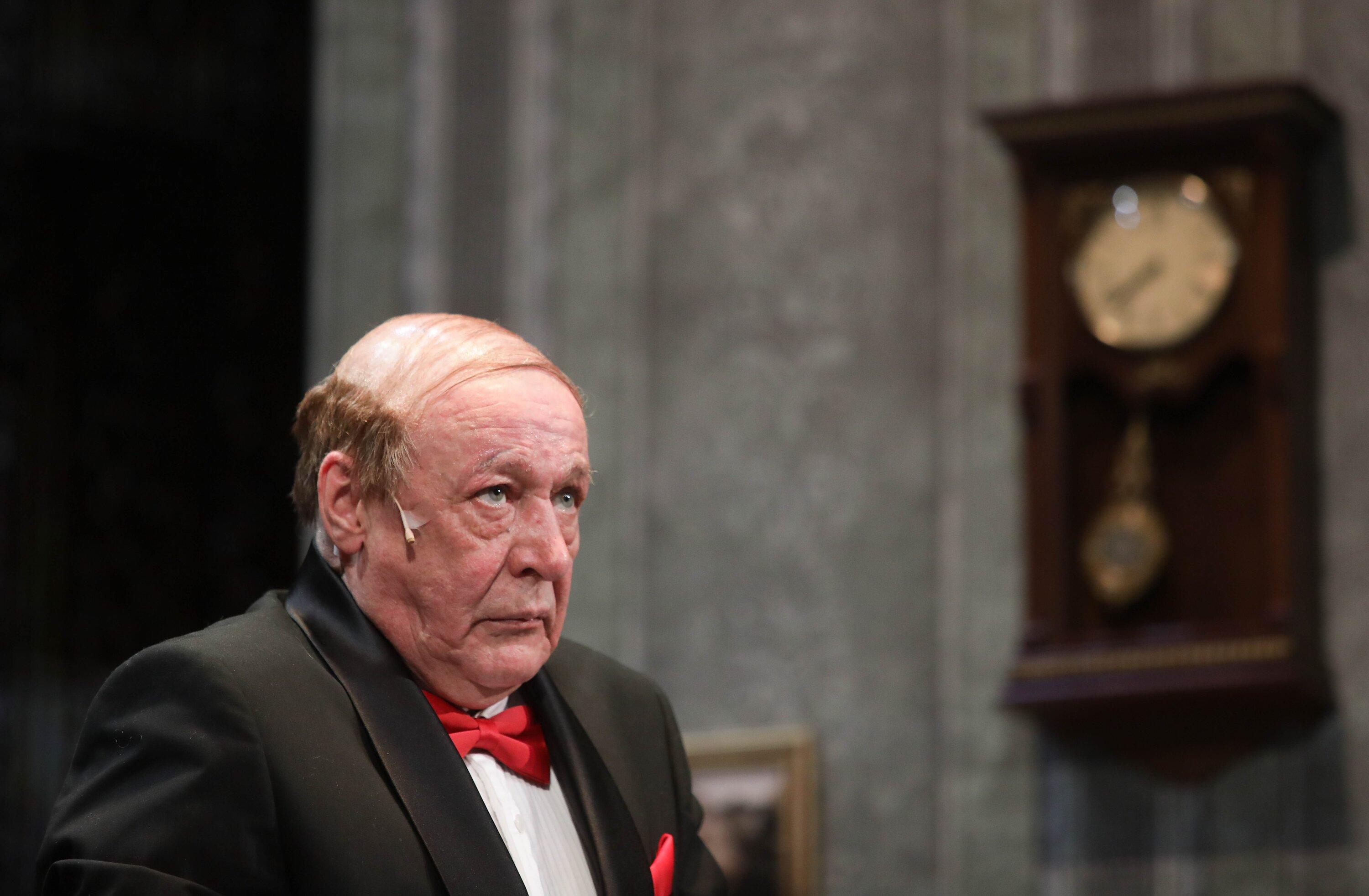 «Это прогон. Мы сейчас еще в стадии становления спектакля. Но это не повод, чтобы быть к нам снисходительными. Вы меня не будете слышать. Страшных ругательных слов, которые приходится говорить каждый день, вы тоже не будете слышать. Но предупреждаю всех остальных, кто находится за сценой, что вы это услышите, если будет что-то не так. Но вот, собственно, и все. Берегите нервы пенсионера», — пошутил или пригрозил режиссер-постановщик.