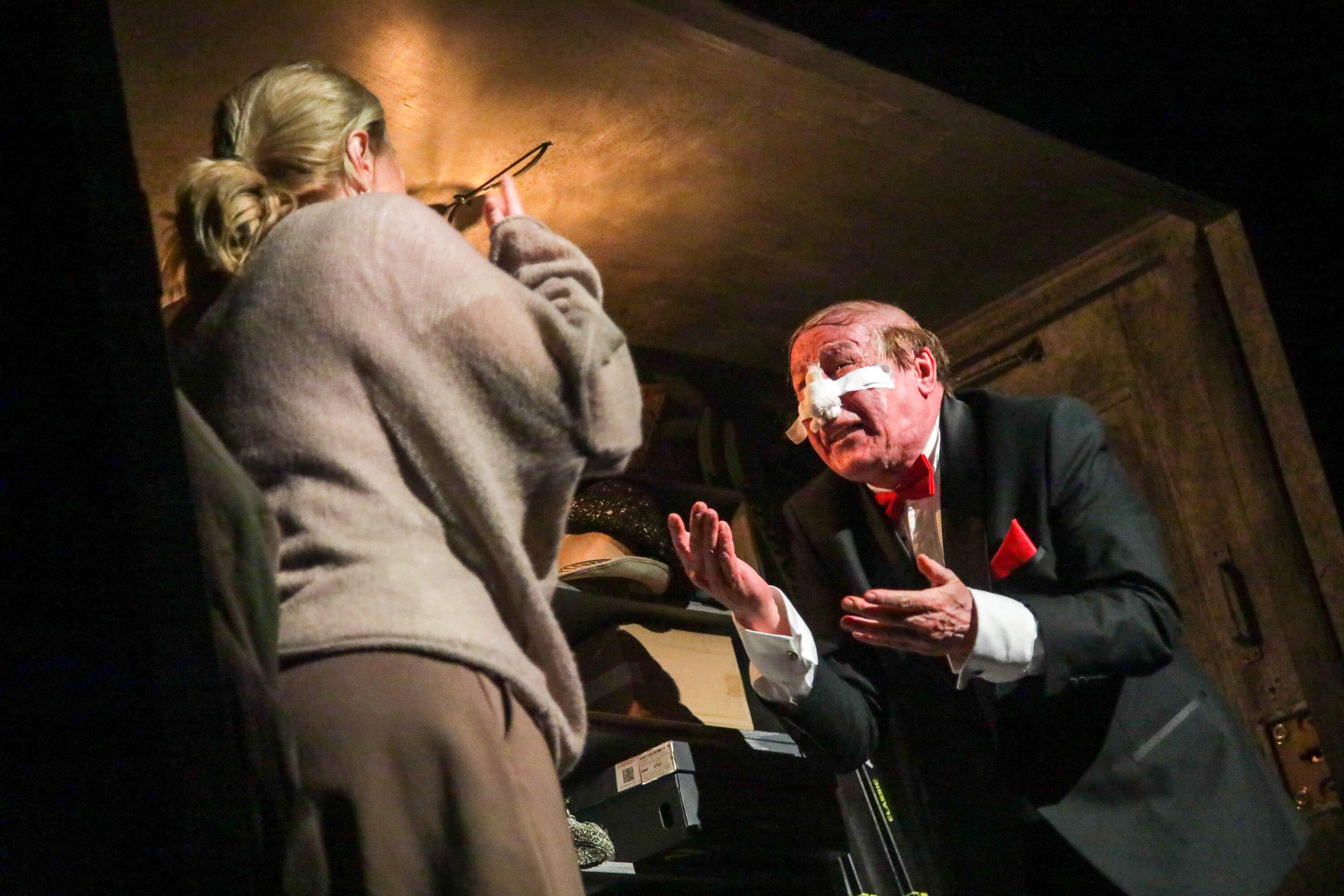 Автор материала во второй раз смотрела постановку — и спустя три недели это оказался уже другой спектакль! Изменились диалоги, изменились декорации, изменились переходы и даже часть сцен. Линия героя Ефремова как будто стала четче: если раньше Он (в «Без свидетелей» у действующих лиц нет имен) в какой-то момент вызывал у меня жалость, то теперь только отвращение и неприязнь.