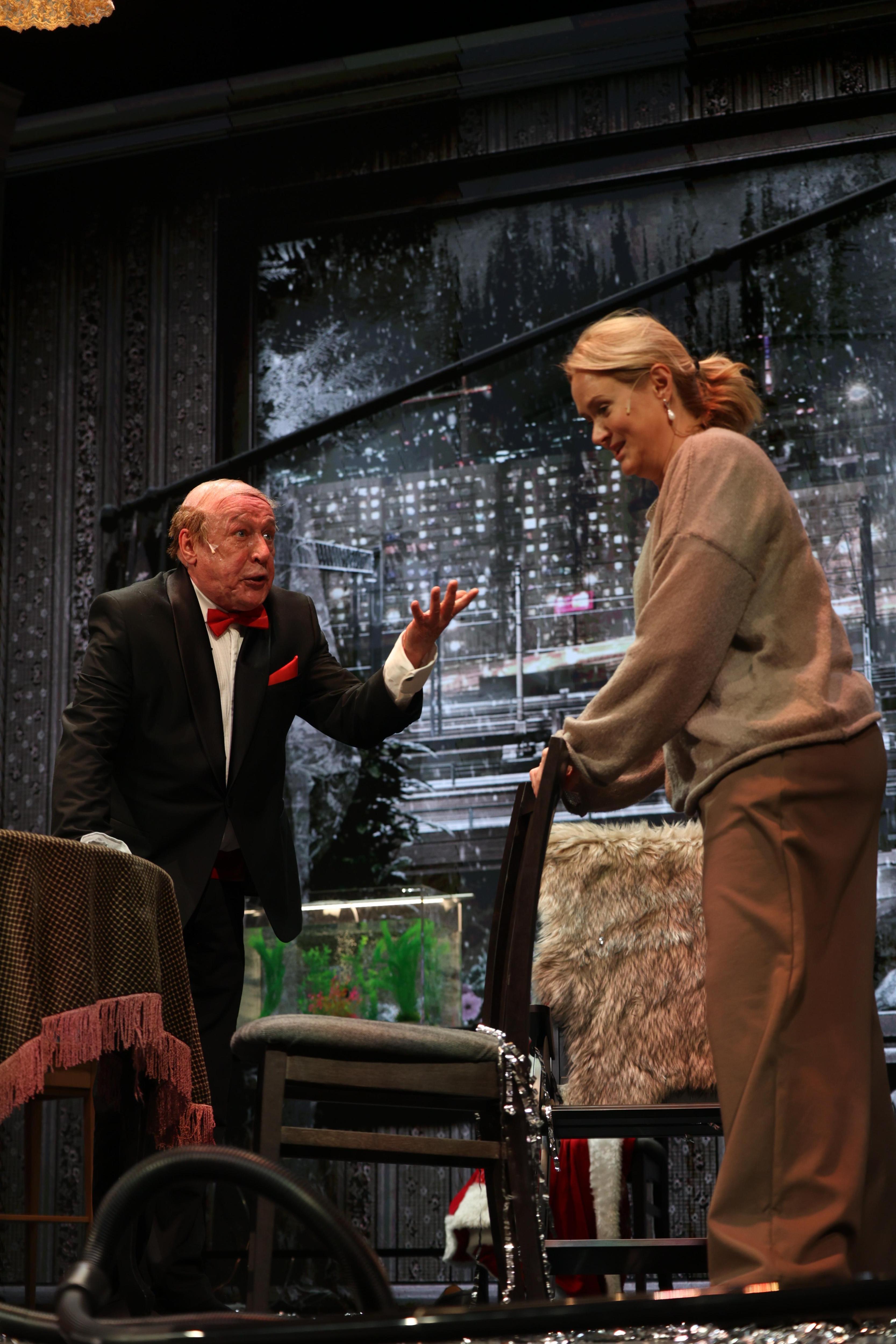 Несмотря на внушительный перерыв в карьере и некоторые проблемы со здоровьем, 62-летний Ефремов демонстрирует в постановке Михалкова всю палитру актерского мастерства. Драма на грани истерики, актеры играют с надрывом, роли сложные, каждый переход и мизансцена несут свои смыслы. Кто-то писал, что Ефремов с трудом выдерживает физические нагрузки, но, по крайней мере на первом показе, он буквально порхал.