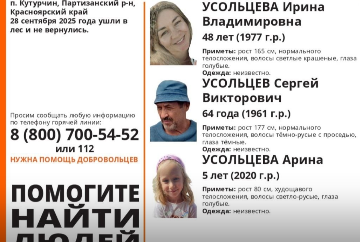 Напомним, Ирина, Сергей и Арина Усольцевы пропали 28 сентября недалеко от поселка Кутурчин Красноярского края. Ранее Ирина, работавшая психологом, рассказывала подписчикам, что готовится к этому походу и с нетерпением ждет его. Поначалу взрослые планировали оставить дочку с бабушкой, но в последний момент передумали.