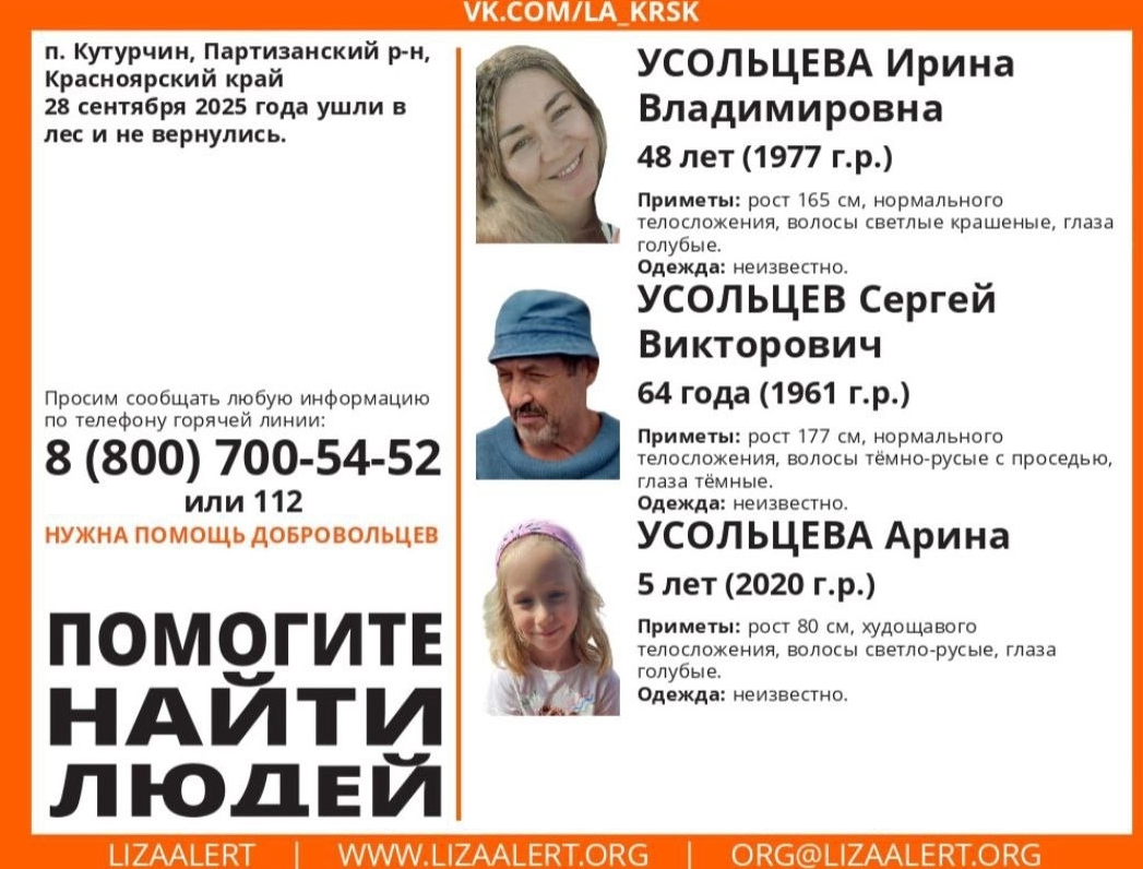Я в личные мессенджеры более ста сообщений получила, в том числе с координатами мест, где могут находиться Усольцевы. Информацию присылали незнакомые люди, экстрасенсы. Некоторые сообщения были бредовыми. Но большую часть, конечно, мы старались все равно проверить, особенно если координаты, допустим, соответствовали заданному квадрату», — вспоминала руководитель отряда «Поиск пропавших детей имени Оксаны Василишиной» Светлана Торгашина.