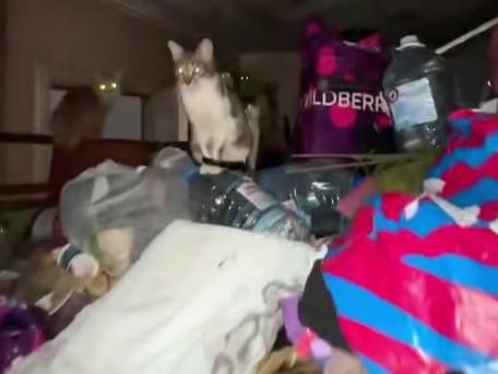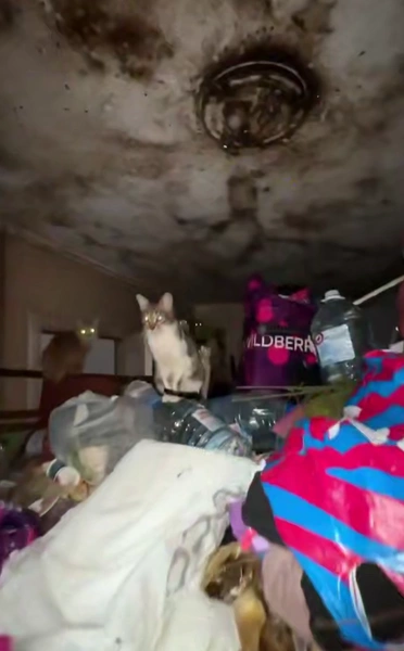 Однако саму женщину он не застал. Вместо нее на горе помоев, сыплющихся прямо с порога, его встретили голодные коты, которые тут же набросились на корм. Хозяйка квартиры — юрист по образованию — передвигается по завалам так же, как и ее питомцы, буквально взбираясь по свалке, словно паук.