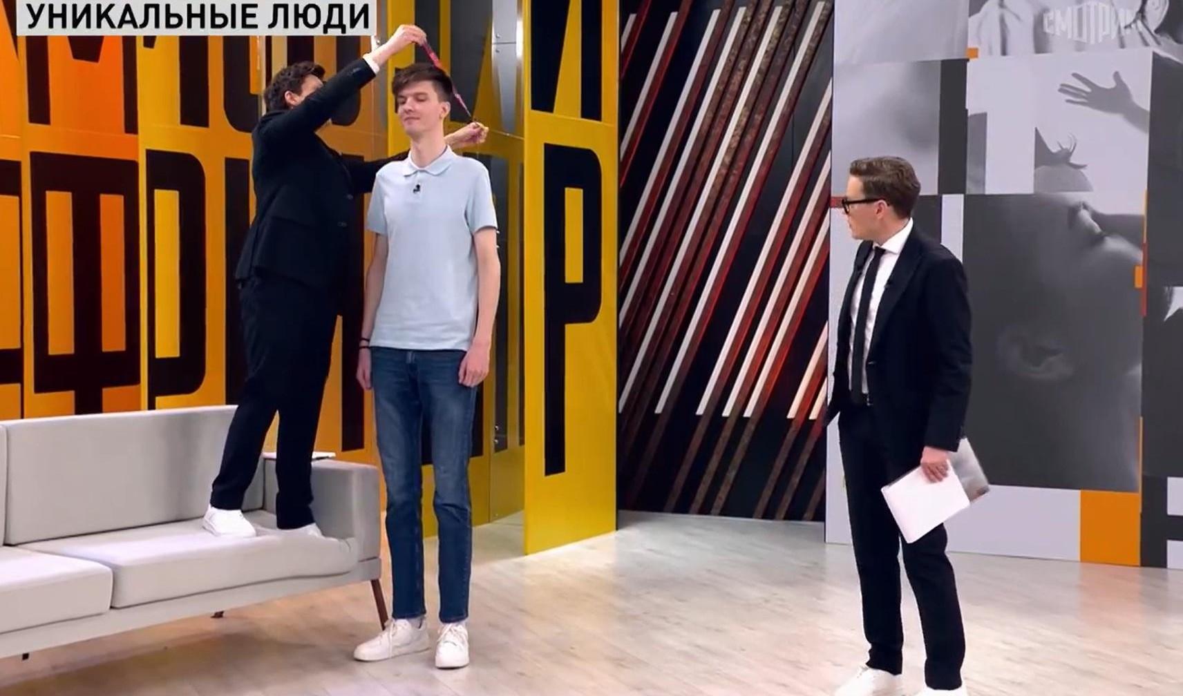 Посетил студию и самый высокий человек Беларуси Алексей Миронов. Его рост 2 метра 13 сантиметров. Мужчина признается, что испытывает неудобства в бытовых вопросах, например, ему тяжело помыться в душе. Зато он запросто вешает картину, протирает пыль со шкафов, чинит кондиционер, хоть часто и стукается головой о разные предметы.