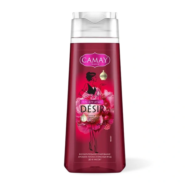 Гель для душа Camay Desir с ароматом пиона и красных ягод работает как будильник с утра: ноты пиона добавляют нежности, а ягодная кислинка бодрит. Средство дает обильную пену и не требует нанесения лосьона после использования, что экономит время перед выходом. Упаковка оснащена удобным дозатором, а консистенция геля достаточно плотная, чтобы экономно расходовать продукт.