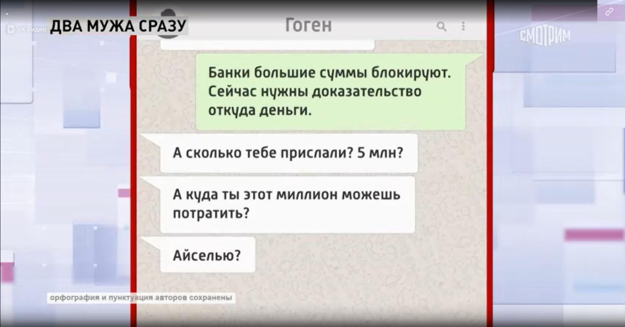 Чтобы доказать свои слова, Чижевская предоставила переписку с Гогеном, где явно прослеживалось желание поживиться на легких деньгах. Солнцев постоянно спрашивал, сходила ли любимая в райсобез, интересовался, долго ли ждать. Узнав, что средства поступили, шоумену было интересно, куда прислали средства — на карту или на сберкнижку. «А сколько тебе прислали? 5 млн? А куда ты этот миллион можешь потратить?» — не унимался Гоген.