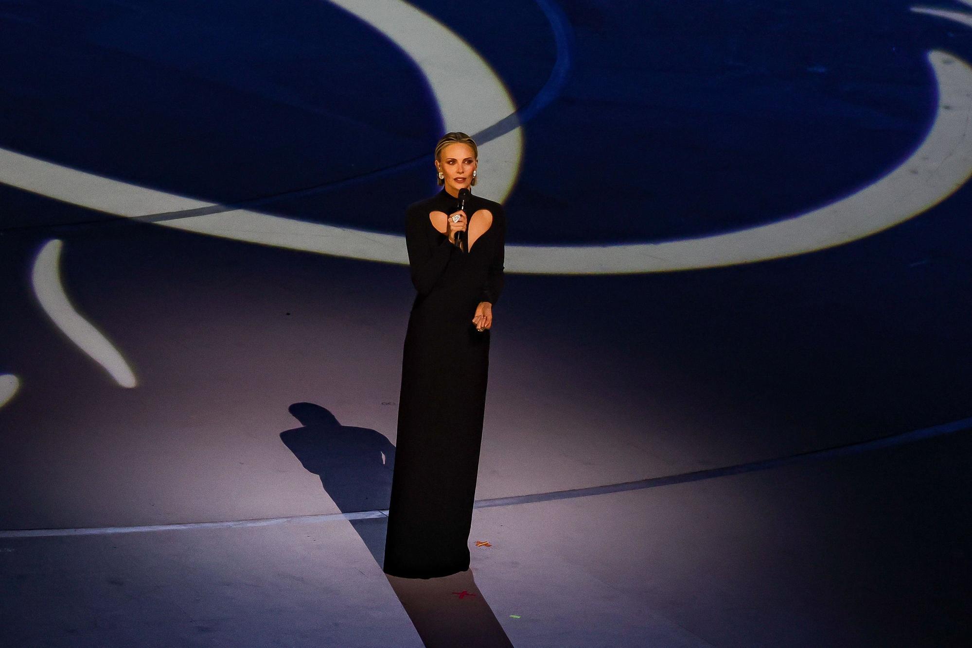 01.05 На сцене появляется актриса Шарлиз Терон в качестве посла ООН. Она передает послание надежды.