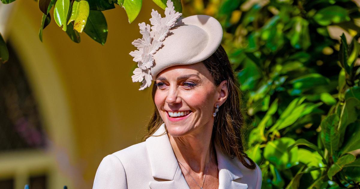 Для пасхальной службы 44-летняя Кейт Миддлтон выбрала изящный бежевый костюм от Self-Portrait. Свой образ принцесса Уэльская дополнила элегантной шляпкой, украшенной дубовыми листьями, а также туфлями на изящном каблучке и стильным клатчем. Узор на жакете принцессы напоминал не что иное, как ананас.