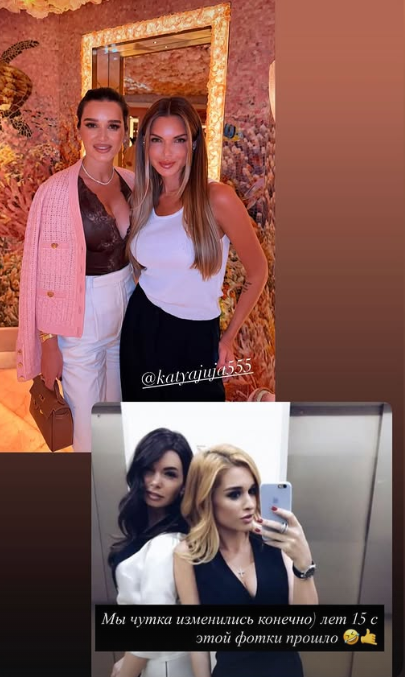 Данная сплетня появились после того, как Катя Жужа пропустила свадьбу Ксении Бородиной с Николаем Сердюковым, которая прошла в начале лета текущего года в живописном месте Подмосковья. Однако на днях подруги все же встретились в Дубае на автогонках и сделали совместные фото, развеяв тем самым все домыслы о своих якобы плохих отношениях. «Мы чуток изменились», — лаконично отметила 42-летняя Бородина, опубликовав также снимок с Жужей 15-летней давности.