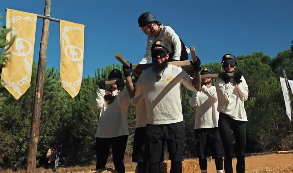 В главной битве выпуска две команды выбрали себе капитанов, которые могли все видеть и направлять своих коллег в непроницаемых масках. Последние сидели на доске, которую удерживали «слепые», они говорили куда идти и параллельно собирали кубики.