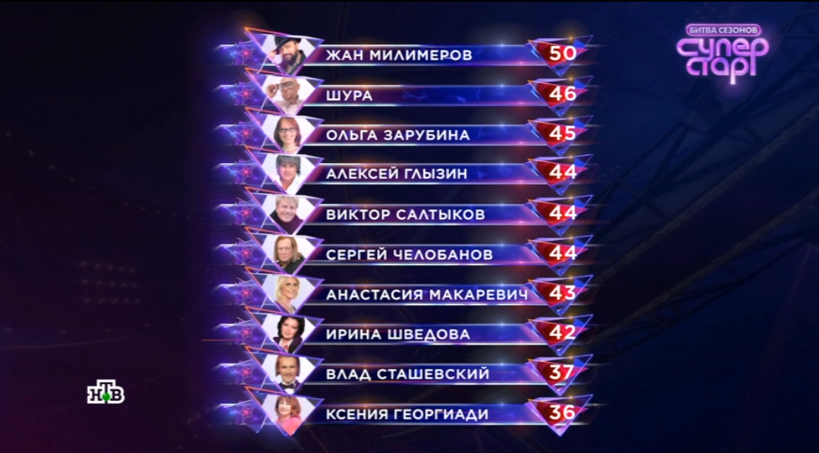 В лидеры выбился Жан Милимеров. Сейчас у исполнителя 50 баллов, а у Шуры, который занимает второе место, только 46.