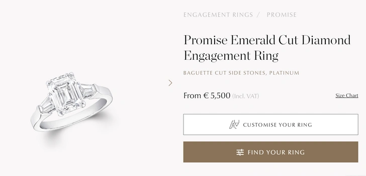 Нынешний жених Анастасии также выбрал украшение Graff, однако оно оказалось значительно скромнее. Кольцо, которое бизнесвумен теперь носит на безымянном пальце, очень похоже на модель с официального сайта премиального бренда. Его цена — 5500 евро, что составляет примерно 488 тысяч рублей.