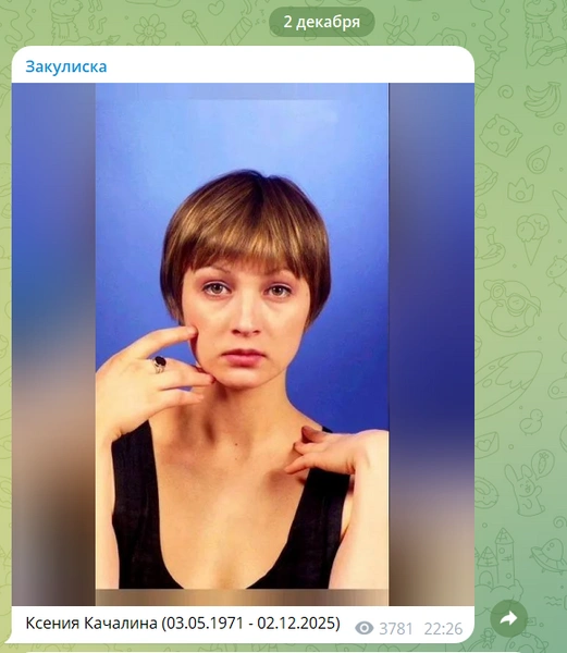 Воспоминаниями о Ксении поделилась и Рената Литвинова. «Давняя новелла, которую я написала среди многих для Киры Муратовой в Одессе. Она выбрала одну и сняла „Офелию, невинно утонувшую“. А эту я продала и — вдруг отрывок из нее всплыл из недр Instagram* (запрещенная в России экстремистская организация) (запрещенная в России экстремистская организация) — Ксения Качалина там играла главную роль. В финале — песня группы „Колибри“. Боже, Ксении сегодня не стало», — горюет Литвинова.