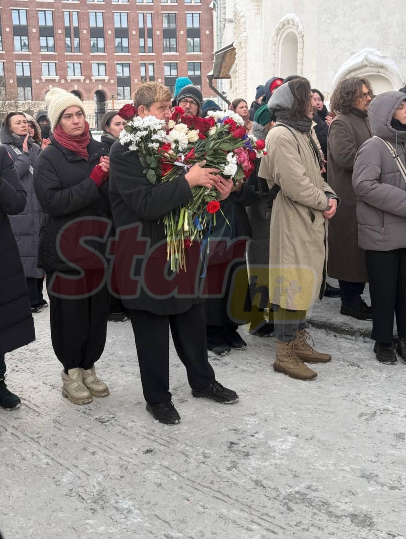 В 12:45 гроб с телом артиста вынесли из храма. Более 70 человек стояли неподвижно, несмотря на холодный ветер, и аплодировали.