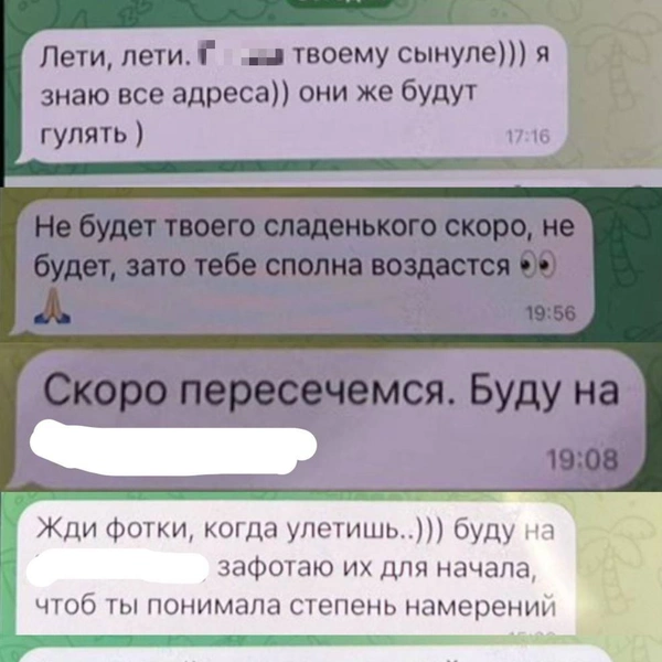 Супруги старались игнорировать неадекватное поведение незнакомки. Однако та вышла за пределы онлайна. Сталкер выяснила домашний адрес артистов и начала присылать снимки их входной двери, а также угрозы физической расправы — например, пообещала облить кислотой.