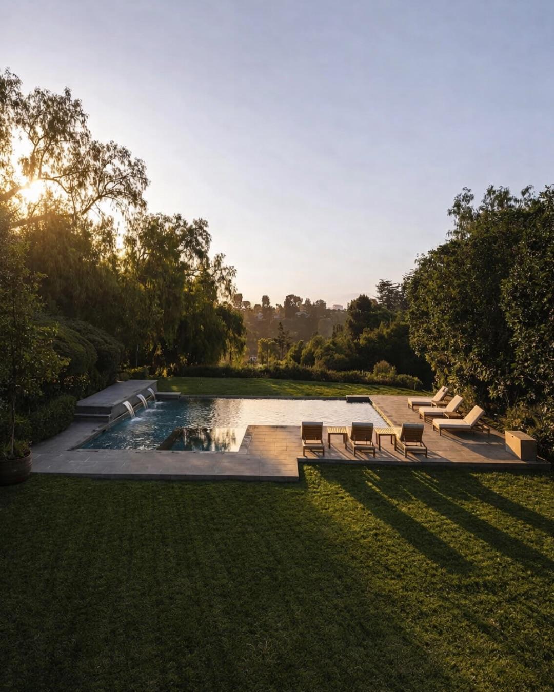 «Внутри вы найдете все, что нужно: от домашнего кинотеатра, тренажерного зала и массажного кабинета до основной спальни, которая больше похож на частный курорт. На улице бассейн в морском стиле, есть еще и камин, а продуманный ландшафт создают уединение, скрывая вас от любопытных глаз в Хидден-Хиллз», — говорит риелтор.