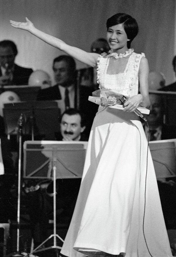«У меня сохранились черно-белые фотографии этого выступления — какая я приехала. Стою в босоножках, в обычном белом платье, позади играет большой оркестр, и я пою. У меня даже не было концертного платья, внешне я выглядела как подросток. Но все равно выиграла этот конкурс, и меня стали приглашать в Алма-Ату на концерты — и с 1976 года я живу здесь», — отмечала звезда.