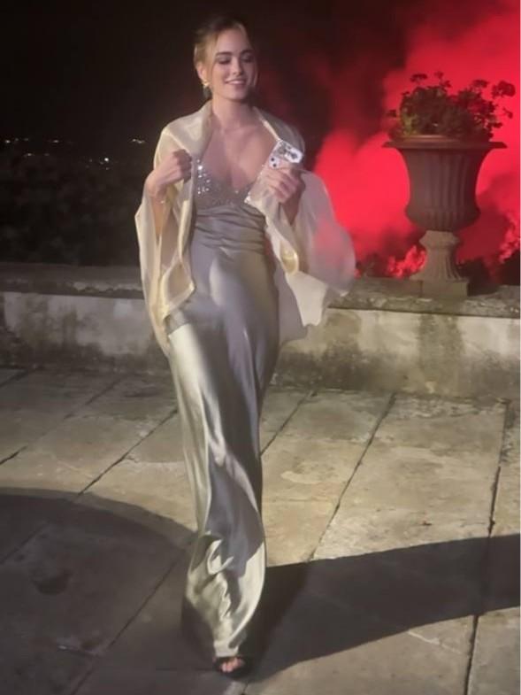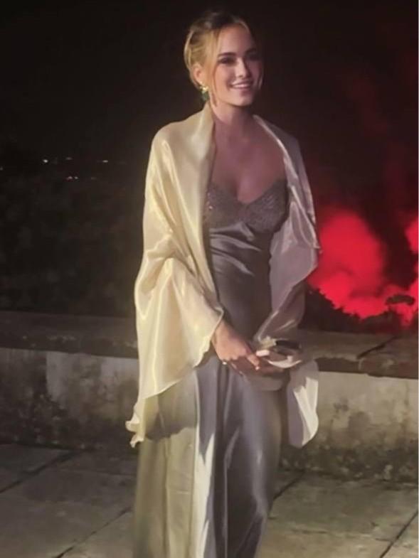 Кадры торжества опубликовала в социальных сетях Анастасия. Важную дату Анисья встретила в серо-бежевом шелковом платье с глубоким декольте, а на плечи набросила кремовую накидку, переливающуюся в свете фонарей. Волосы девушка собрала на затылке, оставив лишь две пряди у лица.