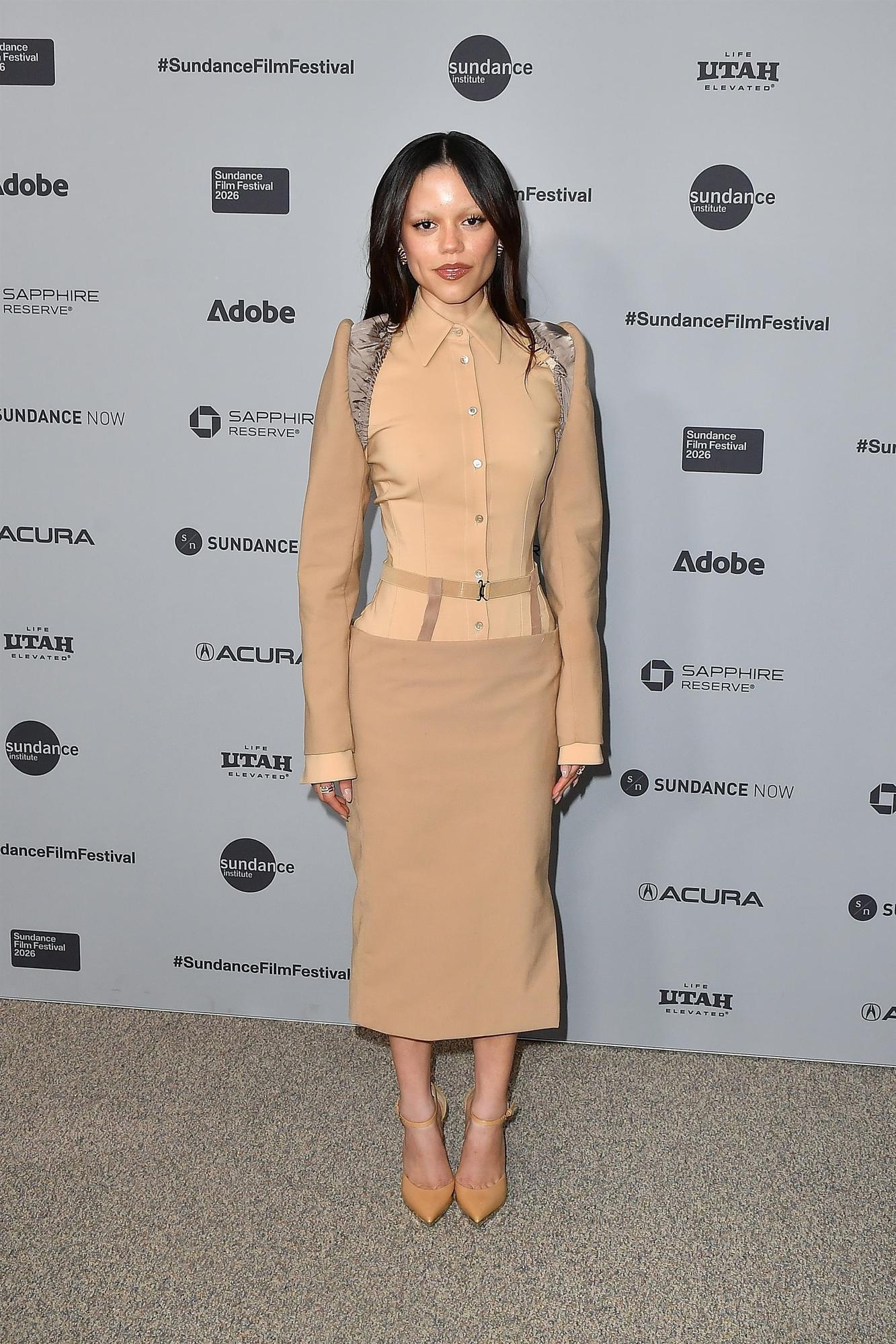 А вот молодая звезда Ортега блистала на показе без косичек, к которым привыкли ее фанаты, да и не в своем эффектном платье из фильма «Уэнздей», а в бежевом костюме, что отлично подчеркнул выразительную талию статной красавицы.
