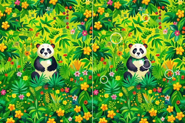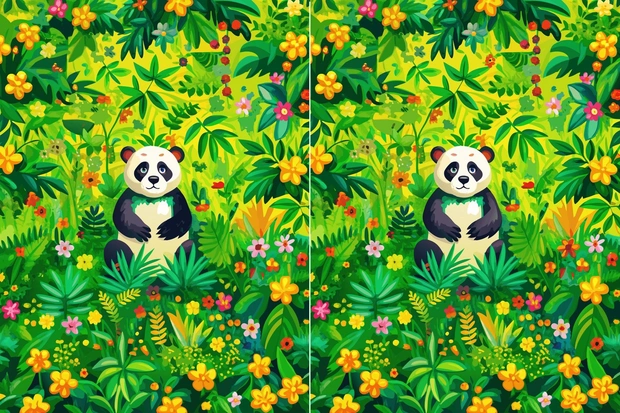 Перед вами изображение с пандой. На первый взгляд картинки могут показаться полностью одинаковыми, но между ними спрятаны пять отличий. Ваша задача — найти их за одну минуту. Ограничение по времени важно: оно имитирует ситуацию быстрой умственной нагрузки, при которой мозг вынужден работать максимально эффективно.