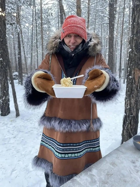 Комик также успел поделиться знанием местных трендов и заодно проверил их на себе. Все это он снял на фото и видео. «Так, ну что, поехали по трендам — бананом забиваем гвоздь, давай Роберт. Один якутский тренд сделан», — с удивлением восклицает отец на видео. Павел не забыл показал всем нашумевшую забаву застывшую в воздухе от низких температур лапшу быстрого приготовления, намотанную на вилку.