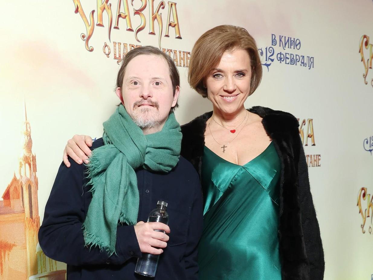 Сегодня на премьере нового фильма Сарика Андреасяна «Сказка о Царе Салтане» Алферова вышла к пресс-воллу в сопровождении приемного сына — особенный юноша по имени Влад попал под ее опеку более семи лет назад. Актриса знает, что Влад очень любит сказки, поэтому взяла его с собой на показ.