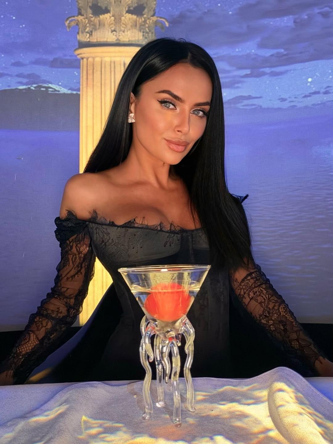 Виктория Романец пригласила друзей в один из столичных ресторанов, где на стол подали устрицы, морских ежей и другие деликатесы. В этот вечер именинница была в облегающем черном платье, которое подчеркнуло ее формы. Образ она дополнила массивным ожерельем с кулоном в форме сердца.